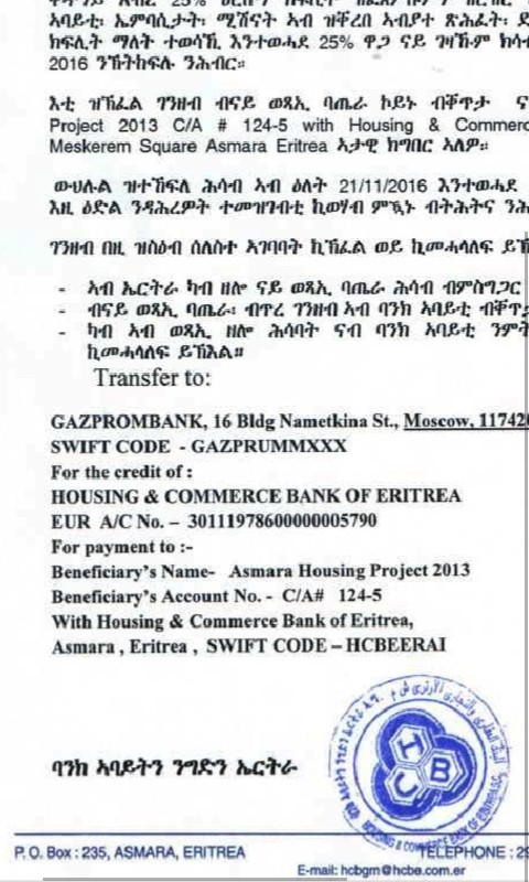 Asmara , Eritrea , SWIFT CODE - HCBEERAI